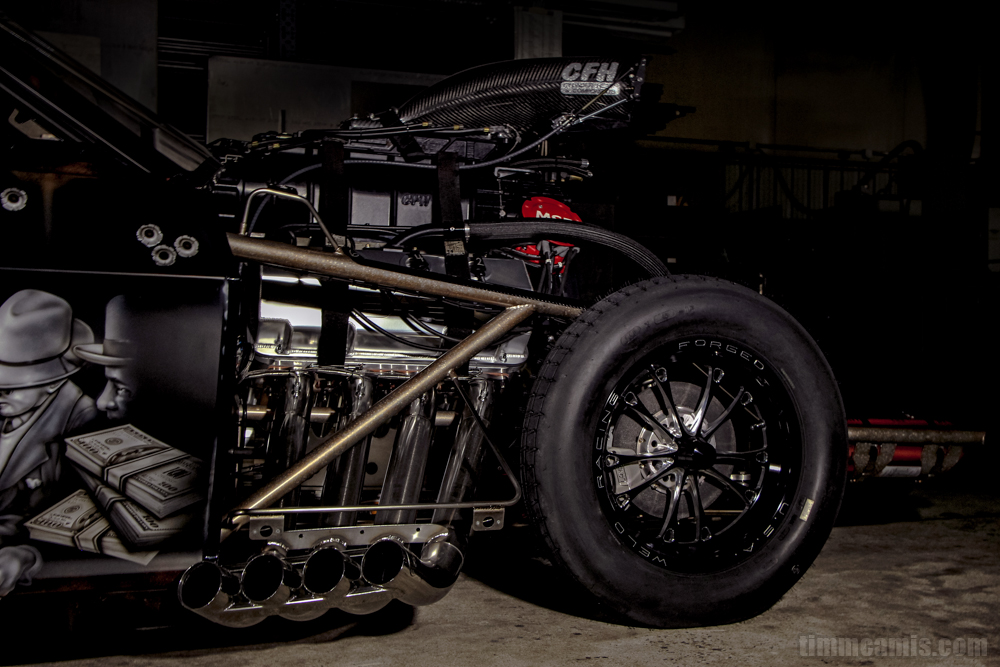 The “Blown Money” theme has run throughout Knowles’ two previous Pro Mod machines, as this is his third TMRC-built car; he most recently competed in his ’68 Camaro whose design was also conceived by Spencer and the team at TMRC, and he’s also owned and competed in a ’63 McAmis Corvette a few years back. Each of these cars has had TMRC’s legendary attention to detail, but this is Mike’s best build yet…