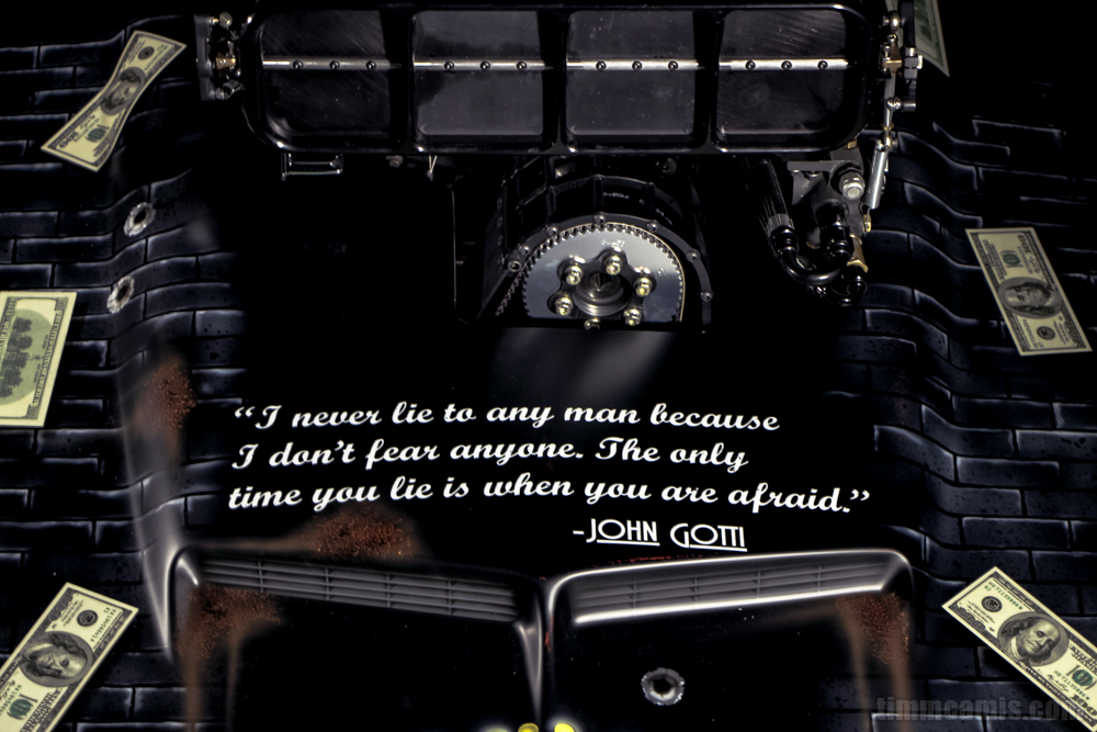 The custom touches on this machine are simply unreal – all centered around Mike’s fascination with the Mob. See, Knowles is a businessman, and there’s perhaps no more successful group of businessmen than the old-time Mafia. Despite their not-so-pure intentions, it’s impossible to discount the fact that they were definitely good at their craft, and Mike’s fascination of the five famous mob families documented throughout the car’s paint scheme is a central point of the car’s build.