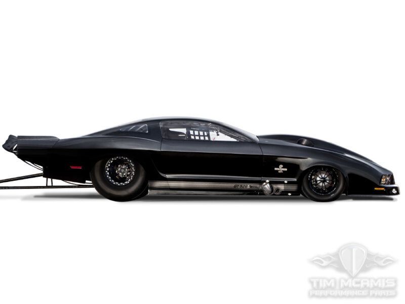 Originally based off of Ford’s Pro Stock design, the 2013 MRE Mustang has been modified by Moran specifically for Pro Mod competition. Improvements made to support this transformation include significantly reducing the frontal area and lowering the roofline while also laying the windshield back. Both sets of wheel wells were made smaller for better aerodynamics and the rear of the body has been reworked for better air diffusion.
