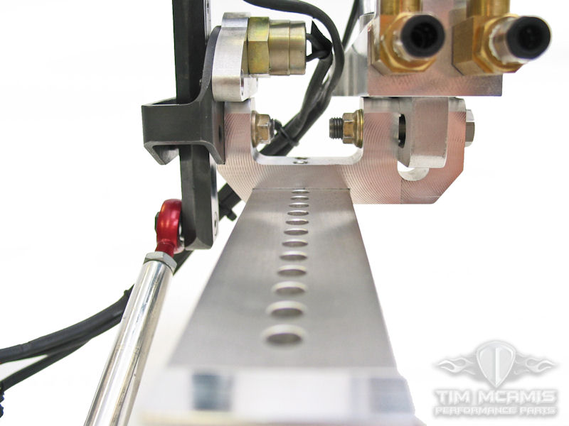One of the latest innovations from Tim McAmis Performance Parts, this billet shifter assembly features multiple adjustment points for the shifter and mounts to the back of your transmission. The adjust-ability of the unit increases comfort, consistency and safety for your driver.
